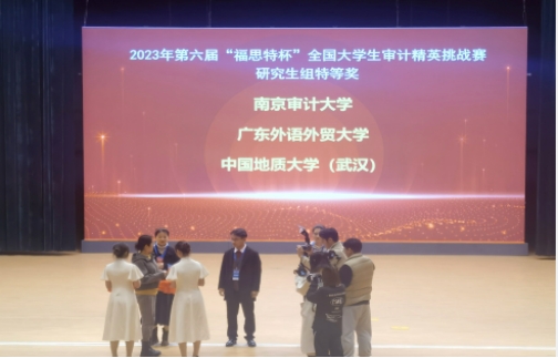 2023年11月18日,第六届“福思特杯”全国大学生审计精英挑战赛在南京审计大学圆满落幕。经过初赛、复赛、决赛的激烈角逐,成人网站 会计系陶岚老师、杨洁老师带领2023级研究生周静奇、张嘉轩、林开然获得研究生组特等奖,会计系2021级本科生李阳、周雪妍、江格格获得本科生组二等奖,创我校参加该项赛事以来的最佳成绩。