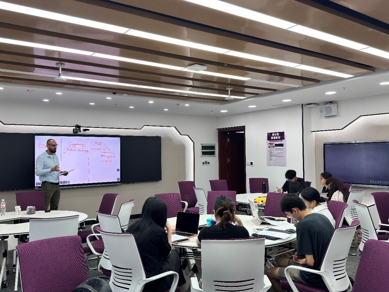 6月10日,DMITRIEV博士在成人网站 智慧教室授课。他结合胜任力模型、T型技能及70-20-10学习法则等前沿理论,引导学生通过真实案例分析企业战略目标设定、学习需求评估及学习型文化建设。课堂采取互动研讨方式帮助学生掌握管理模型的实际应用,培养全球化视野与创新思维。