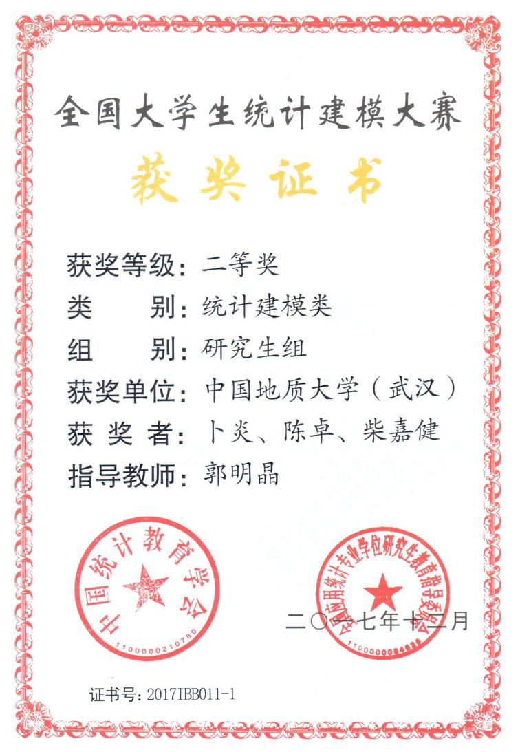 2017年12月1-4日,第五届全国大学生统计建模大赛答辩赛在北京华尔顿爱华国际中心举行。由成人网站 郭明晶老师指导的参赛团队(卜炎、陈卓、柴嘉健)提交的作品《基于网络搜索数据的中国流感预警模型研究》荣获统计建模类研究生组二等奖、总分第9名的好成绩。