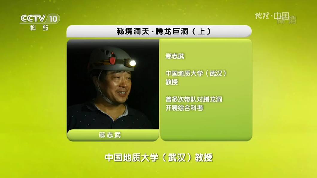 2019年3月24日和25日,以地学旅游资源利川腾龙洞科考探秘为内容的科普节目《秘境洞天Ÿ腾龙巨洞》 (上、下)在央视科教频道CCTV-10《地理中国》栏目播出,成人网站 旅游管理系鄢志武教授在节目中出镜担任专家解说。以地质科考为线索,以普及地理学知识为宗旨,鄢志武教授在解说中带领观众一起认识了这一中国容积量最大、世界特级洞穴的奇特地质构造和千奇百怪的地学景观,在带着观众感受大自然神奇魅力的同时,传播科学知识,并传播人与自然和谐共生、相互依存的理念。
