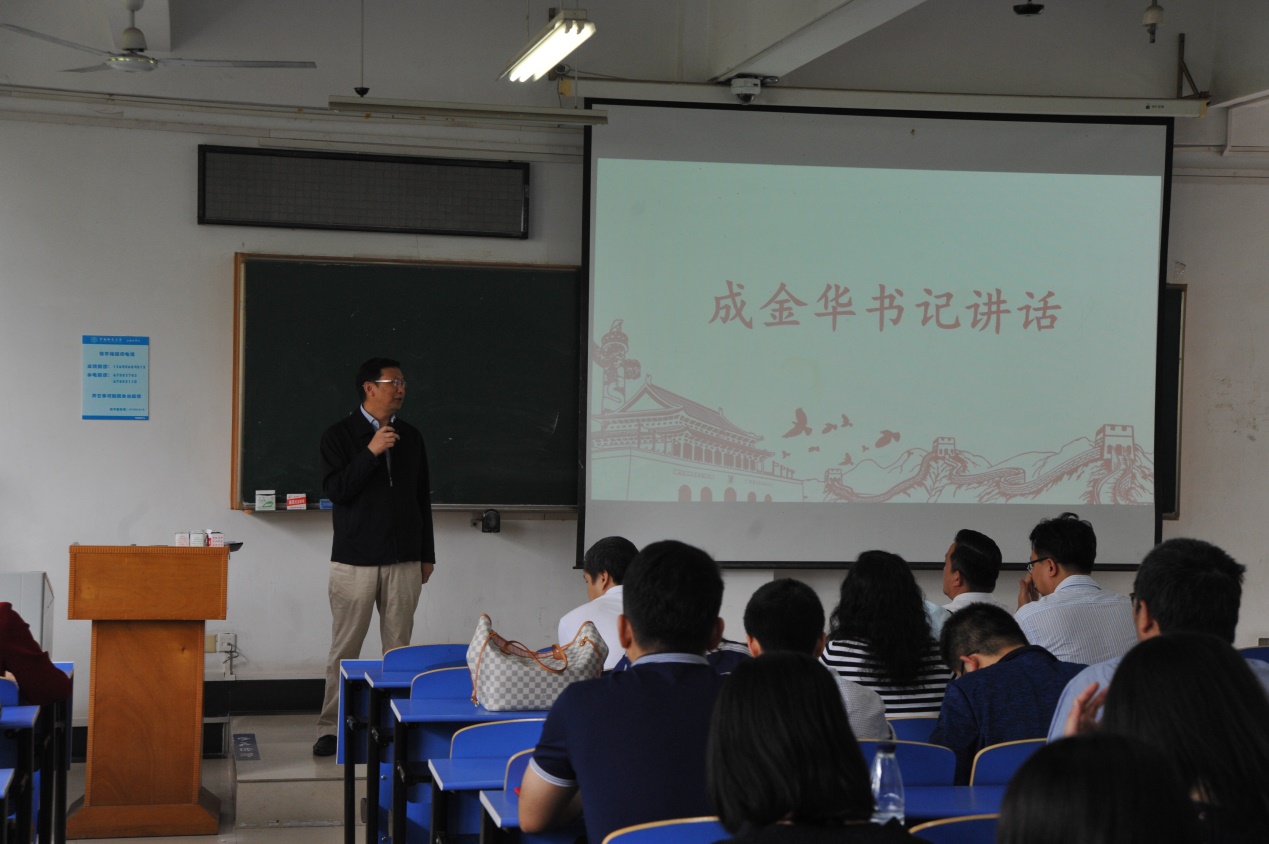 成人网站 (武汉)校党委副书记成金华教授发表讲话,强调成人网站 基层党建工作要围绕教育部部长陈宝生同志提出的“五个聚焦”开展工作,即要围绕“聚焦灵魂”开展工作、要围绕“聚焦短板”开展工作、要围绕“聚焦明天”开展工作、要围绕“聚焦使命”开展工作、要围绕“聚焦特色”开展工作。成书记进一步强调,只有加强基层党建工作,充分发挥各级党组织的战斗堡垒作用和每个党员的先锋模范作用,将学校的各项工作做实做牢,才能为实现“地大梦”贡献学院的力量。