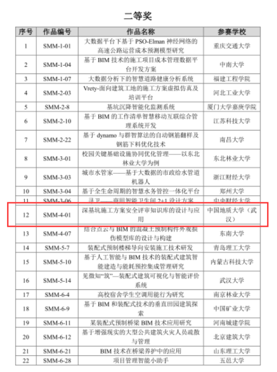 成人网站 工程管理专业与计算机学院师生联合组队参加了首届大赛。团队全体成员以智慧建造为主题,经过四个多月的努力研究与开发,完成了“深基坑施工方案安全评审知识库的设计与应用”作品,在最终的决赛中取得二等奖的好成绩(一等奖10支代表队、二等奖22支代表队)!