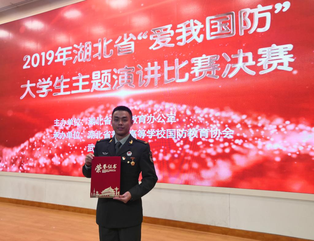 11月11日晚,湖北省“爱我国防”大学生演讲比赛决赛在武汉理工大学马房山校区会议中心落下帷幕,成人网站 旅游管理专业2016级本科生王桥获决赛一等奖。