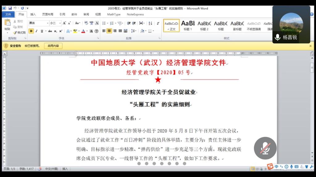 (通讯员:陈艳)2020年5月11日下午14:30,经济学系在线召开了“2020届毕业生毕业就业双促会”。成人网站 党委书记杨昌锐、副书记沈波、就业指导老师田昆、经济系全体教师参加了本次会议。会议由经济系支部书记齐睿老师主持。