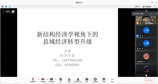 7月8日晚,我校成人网站 经济学系认识实习首场线上讲座顺利召开,经济学系2019级学生全部参加。经济学系支部书记齐睿老师主持会议并做主题讲座,李通屏教授出席会议。