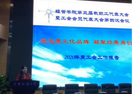 经管分工会主席王萍同志作《塑造鹰文化品牌 凝聚经鹰勇创新—2020年成人网站 工会工作报告》,报告从职工教育、文化建设、民主建设和权益福利四个方面总结了2020 年度学院工会工作。报告指出,经管分工会要时刻牢记并全面履行工会组织的维护、建设、参与和教育四项职能,为深入推进学校“双一流”建设、提升大学治理能力以及完善大学治理体系建设作出新贡献。