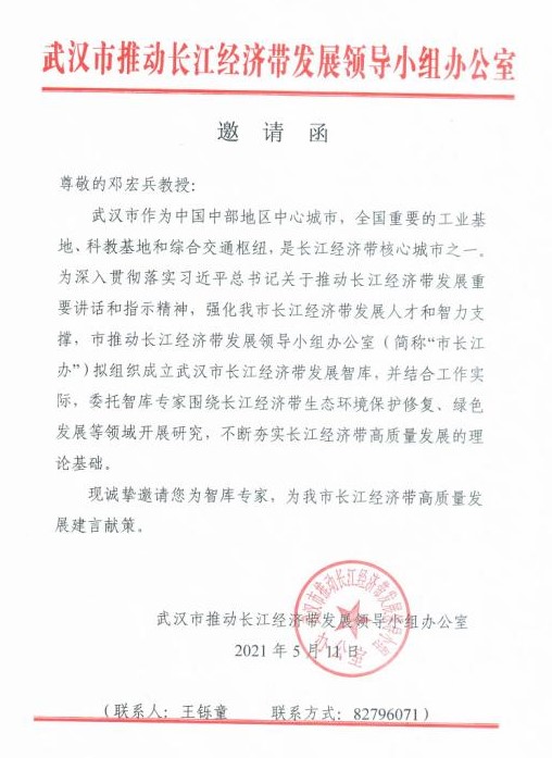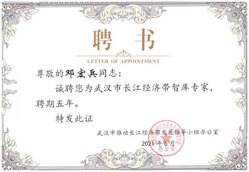 (通讯员王彦闻)近日,成人网站 国贸系邓宏兵教授被武汉市推动长江经济带发展领导小组办公室聘为武汉市长江经济带智库专家,聘期五年。
