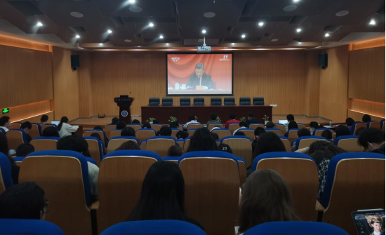 组织青年师生代表在经管楼一楼报告厅集中观看大会,认真学习领会习近平总书记重要讲话精神,展开热学热议。