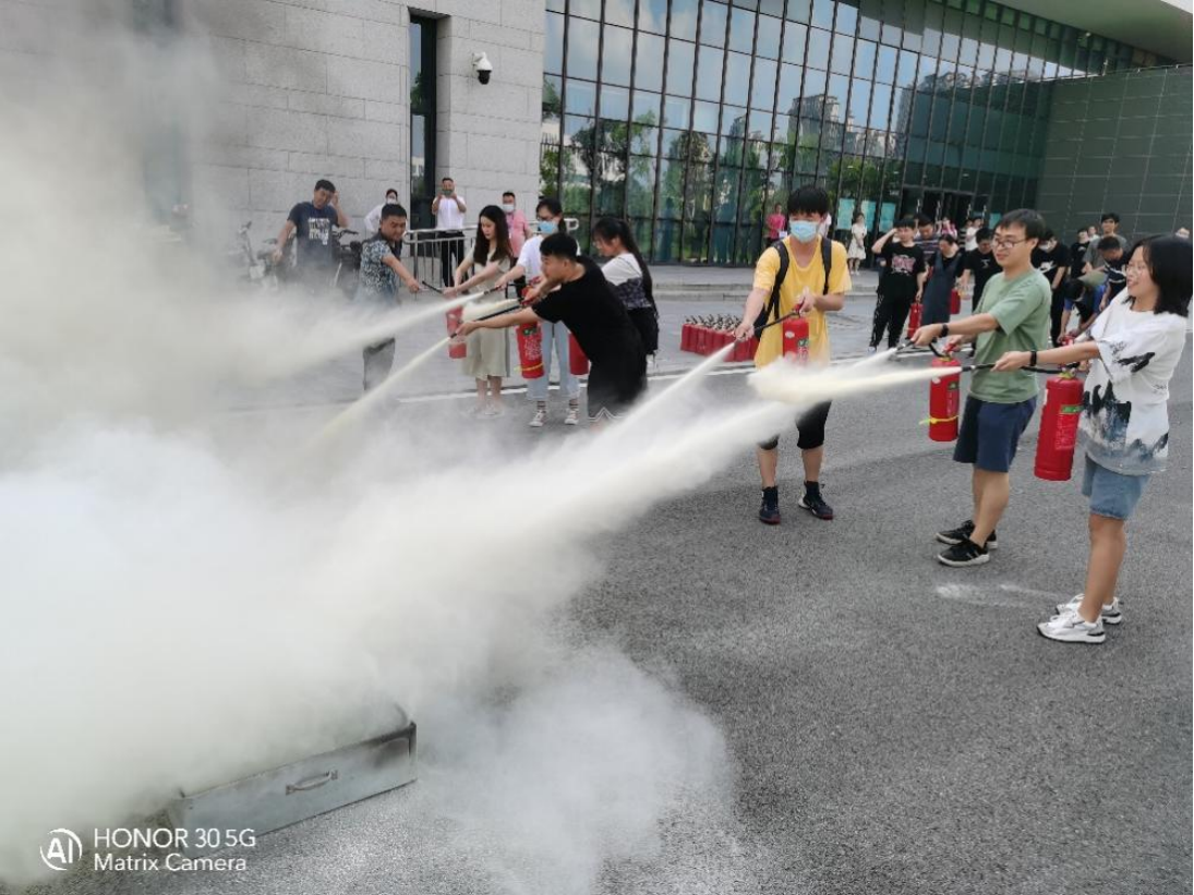 随后进行了灭火演习,首先由未来城保卫综合办公室彭红进同志示范了如何正确使用灭火器,如何有效的进行灭火。讲解结束后,参与演练师生争先恐后,亲身体验灭火。