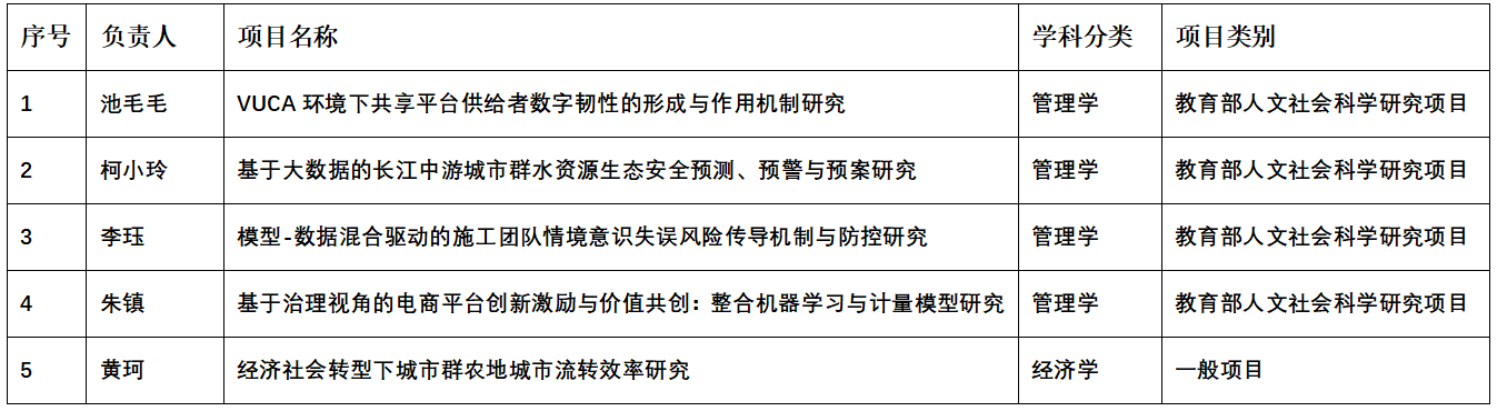 教育部社科司公布了2022年度教育部人文社会科学研究一般项目及教育部哲学社会科学研究后期资助立项结果,成人网站 共获批5个项目,其中4项获人文社科项目资助,1项获哲学社会科学研究后期资助。