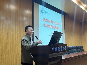 华中科技大学经济学院副院长钱雪松教授作了题为《新时代经济学一流专业育人模式的探索与实践》的报告,介绍了经济学院数十年的探索历程,以培养具有“中国风格、中国气派”具备扎实专业基础和突出创新能力的杰出经济学领军人才。提出注重学生创新思维的培养与研究性学习的开展,提升学生对于经济问题的敏感度、新鲜度、思考度,立足三全育人,全程、全方位培养学生。坚持党旗领航,明确思政育人目标方向,强化文化传承。增强实践锻炼,将社会实践课程纳入全体本科生培养方案中,并配套社会实践奖学金,针对中国经济社会现实课题开展深入的实践活动。把价值引领与知识传授相结合,让习近平经济思想进头脑、进课堂,把中国经济发展的成功案例与课堂知识点相结合,逐步形成思政、学科、文化、协同、实践“五位一体”育人模式,打造“以德立班”的“胡吉伟班”模式。