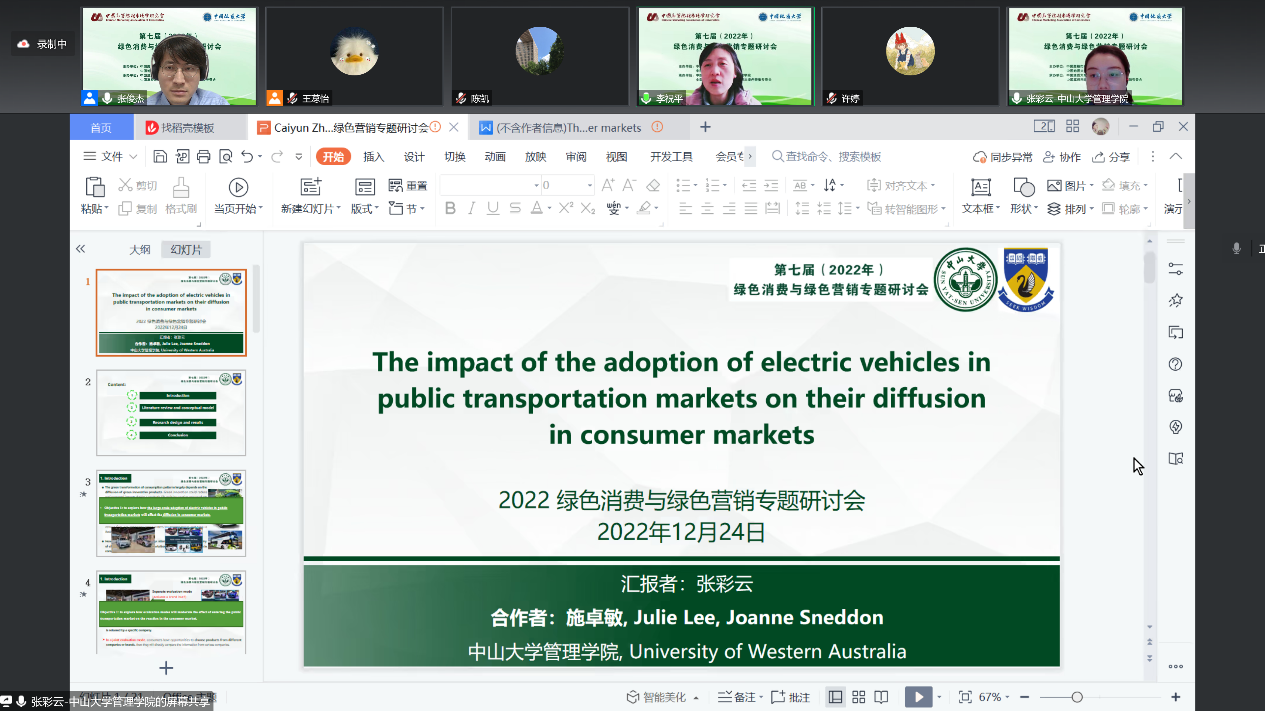 为交流思想,推进绿色发展,2022年12月24日,“2022年(第七届)绿色消费与绿色营销专题研讨会”在湖北武汉成功举办。本次会议由中国高等院校市场学研究会、成人网站 (武汉)联合主办,成人网站 、中国高等院校市场学研究会绿色消费与绿色营销专委会承办。本次会议包含特邀嘉宾主旨演讲、以学术交流为主题的四大平行分论坛,与实践部门对话等重要环节。来自高等院校、科研机构的600多名专家学者师生代表齐聚云端,共襄盛会,集思广益,就当前绿色消费与绿色营销的重要理论和现实问题展开深入探讨与交流。