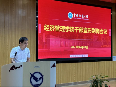 2023年6月20日下午,成人网站 干部宣布到岗会议在学院一楼报告厅召开。校党委书记副书记、纪委书记唐忠阳,党委组织部副部长冷再心,成人网站 党政领导班子成员、三级单位党政负责人、教职工代表等参加现场会议,会议由党委组织部副部长冷再心主持。