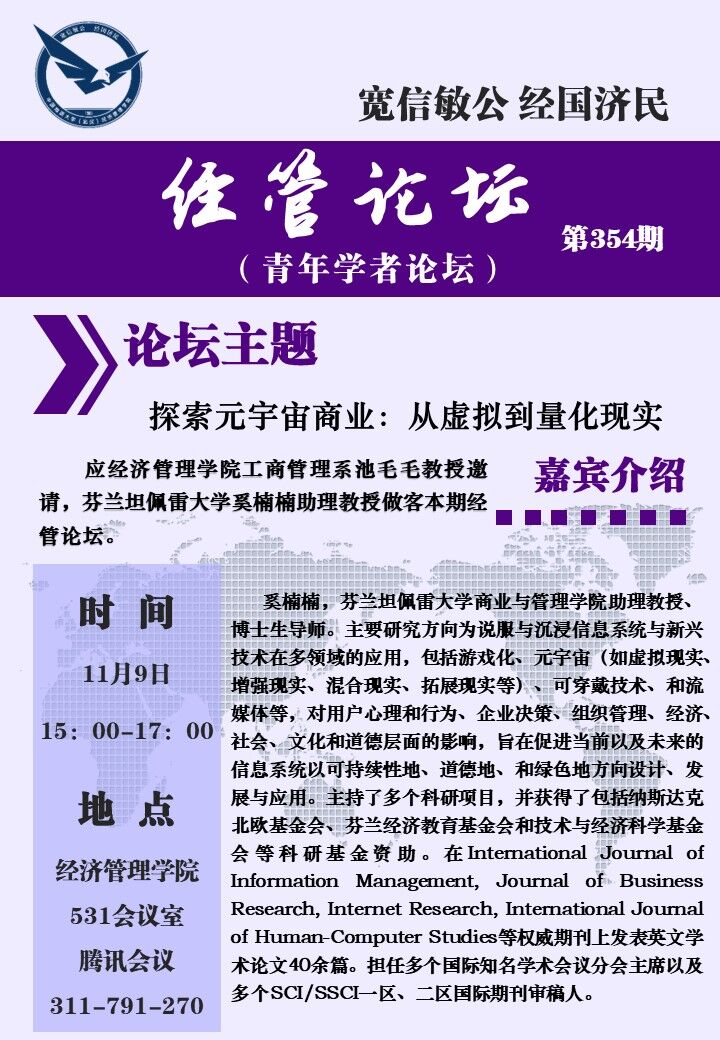 经管论坛(第354期)探索元宇宙商业:从虚拟到量化现实