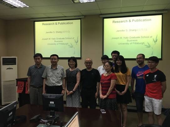 2016年7月6日,美国匹兹堡大学教授Jeniffer Shang应成人网站 严良院长和郭海湘教授邀请,于下午3时在MBA104与成人网站 各位师生进行学术交流,作了题为Reaearch&Publication的精彩报告并以问答的形式与各位师生进行了更进一步的讨论。严良院长,王开明副院长等出席会议。