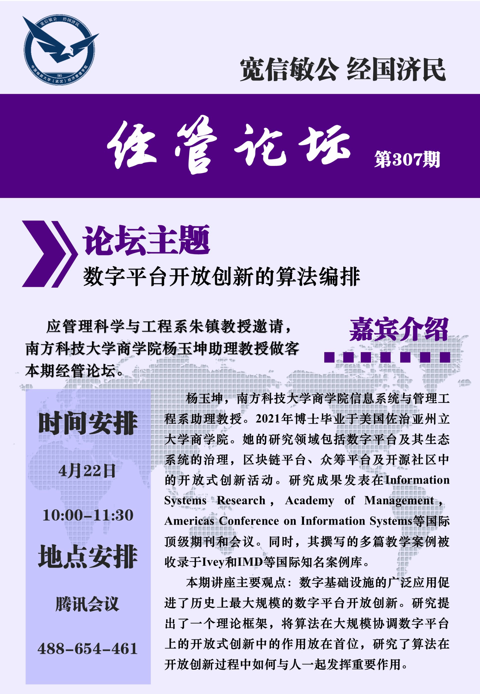 经管论坛(第307期)数字平台开放创新的算法编排