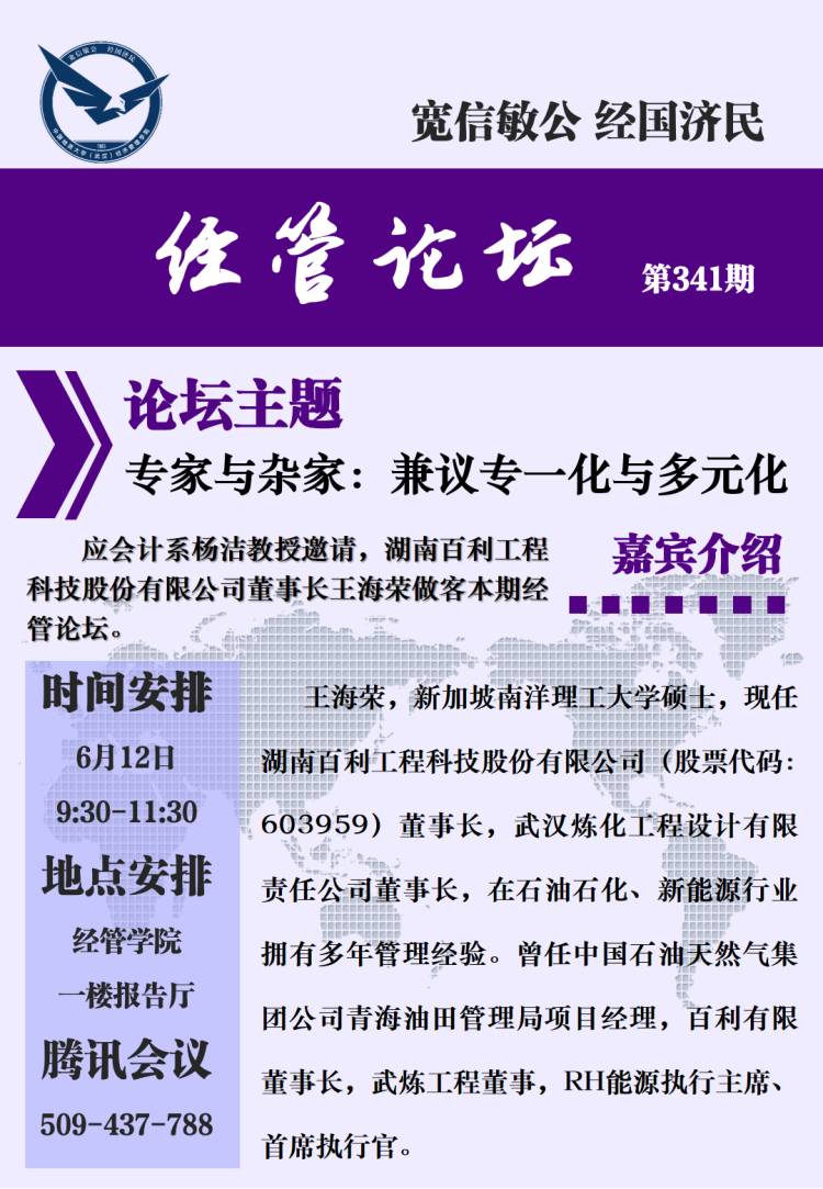 经管论坛(第341期)专家与杂家:兼议专一化与多元化
