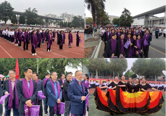 开幕式上,成人网站 教职工精神焕发,肩披由中国红和地大蓝融汇而成的经管紫围巾,手挥经管紫小院旗,与学生们共同组成方队,将院徽经“鹰”精神和“宽信敏公,经国济民”的院训精神再次展示在全校师生面前。参与开幕式《绽放的青春》集体舞节目表演的女教师们,展开美丽的彩虹裙,秀出烂漫的热情与活力。