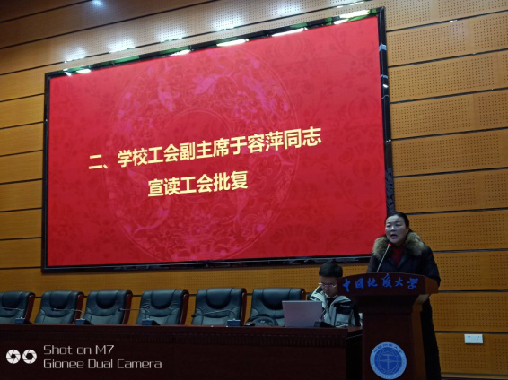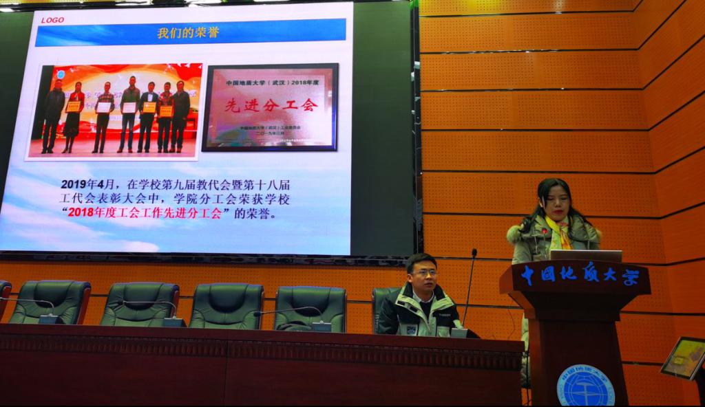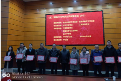 下午,各系主任报告2019年目标责任制实施状况和改进措施,以及交流对学院教学、科研、学科建设、人事等管理制度的建议。经济学系齐睿同志和旅游管理系李江敏同志作专题报告。然后,教职工代表对2019年度工作报告、财务工作报告和工会工作报告进行举手表决,形成大会决议。大会上表彰了学院年度优秀教师,授予邹伟进和刘宇清两位荣休教师“卓越贡献奖”。最后,学院党委书记杨昌锐同志致闭幕词,大会在奏唱国际歌中胜利闭幕。