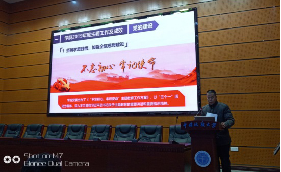 上午,院党委书记杨昌锐同志主持大会开幕式。首先,学校工会副主席于荣萍同志宣读校工会批复,并致辞。然后,全体教职工听取了三大工作报告。院长杨树旺同志作2019年度工作报告和财务工作报告。杨树旺院长的工作报告总结学院2019年度主要工作及成效和薄弱环节,提出学院2020年度工作重点。工会主席王萍同志作2019年度工会工作报告“创学院文化品牌建民主管理制度”。同时,还听取了学院党政领导班子成员的述职报告和学院制度修订情况报告。