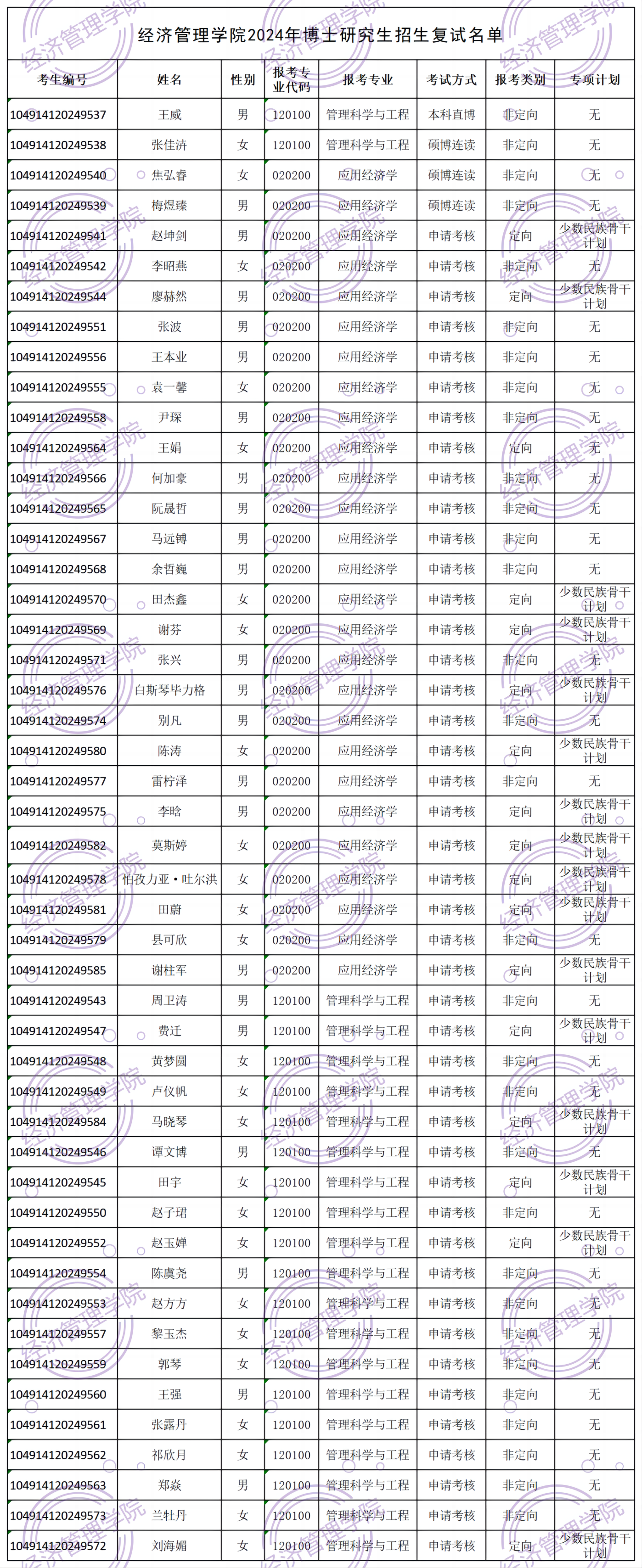 4.少数民族高层次骨干人才计划考生还须参加学校统一组织的英语考核,具体时间和地点以学校研招网公告通知为准。