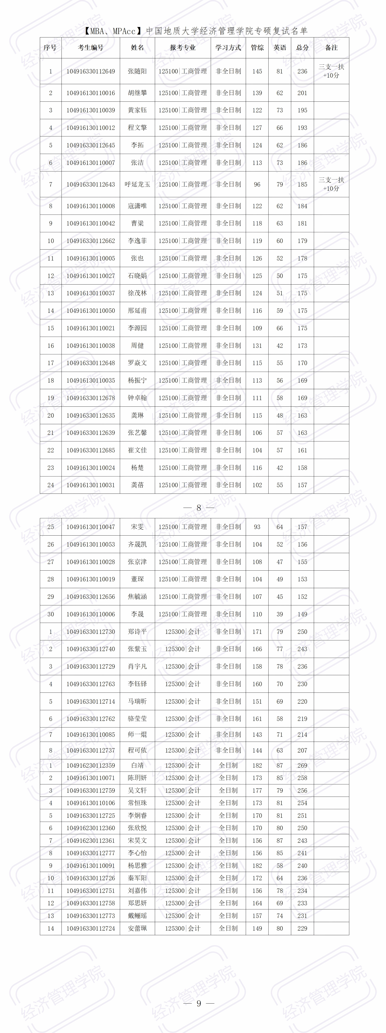 一、【MBA、MPAcc】成人网站 成人网站 专硕复试名单