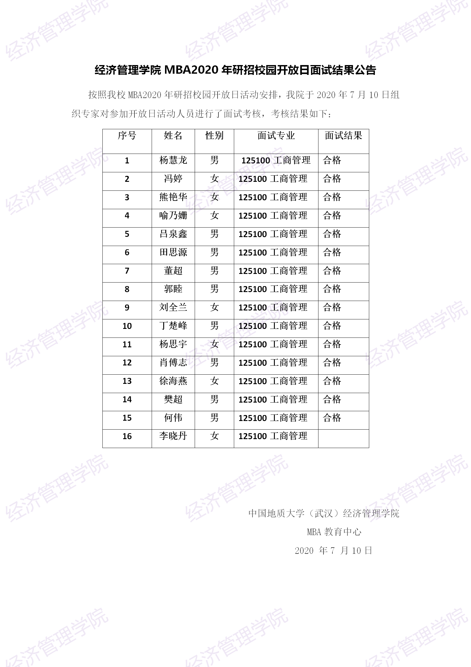 成人网站 MBA2020年研招校园开放日面试结果公告
