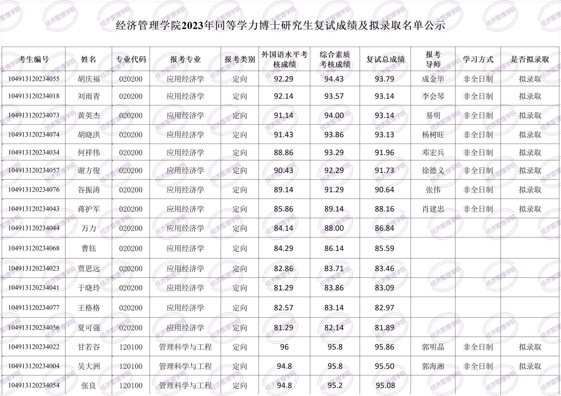 根据2023年同等学力人员申请博士学位研究生招生复试录取工作方案,经资格审查和复试考核,现对2023年拟录取单证博士生名单予以公示,公示期为6月12日-6月21日。在公示期内有异议的,请联系成人网站 研究生办公室王老师,联系方式:027-67883204,邮箱:[email protected]。
