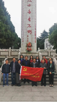 (通讯员:易杏花)作为“不忘初心 牢记使命”主题教育活动的一个组成部分,选择红色革命圣地进行瞻仰与学习既是创新主题学习方式的需要,更是提升主题教育效果的必要环节。2019年10月26日-27日,国际经济与贸易系党支部组织全系党员同志、九三学社成员以及群众教师共12人,赴河南省新县开展现场学习,通过瞻仰烈士陵园、敬献花篮、观看红色主题展览、重温入党誓词等一系列教育活动,进一步激发党员、群众的爱国热情,谨记往昔革命之艰辛,珍惜今日幸福之不易,牢记使命,努力为新时代而奋斗。