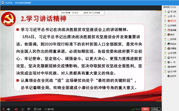 (旅游管理系党支部宣)2020年3月26下午,旅游管理系党支部主题党日以QQ电话会议召开,支部全体党员、外派挂职党员和群众教师全员参加会议。按照校党委的指示,此次支部主题党日活动以“坚持不懈,坚决打赢疫情防控阻击战”为主题,分回顾近期工作、学习讲话精神、学习先进事迹等三个环节进行。