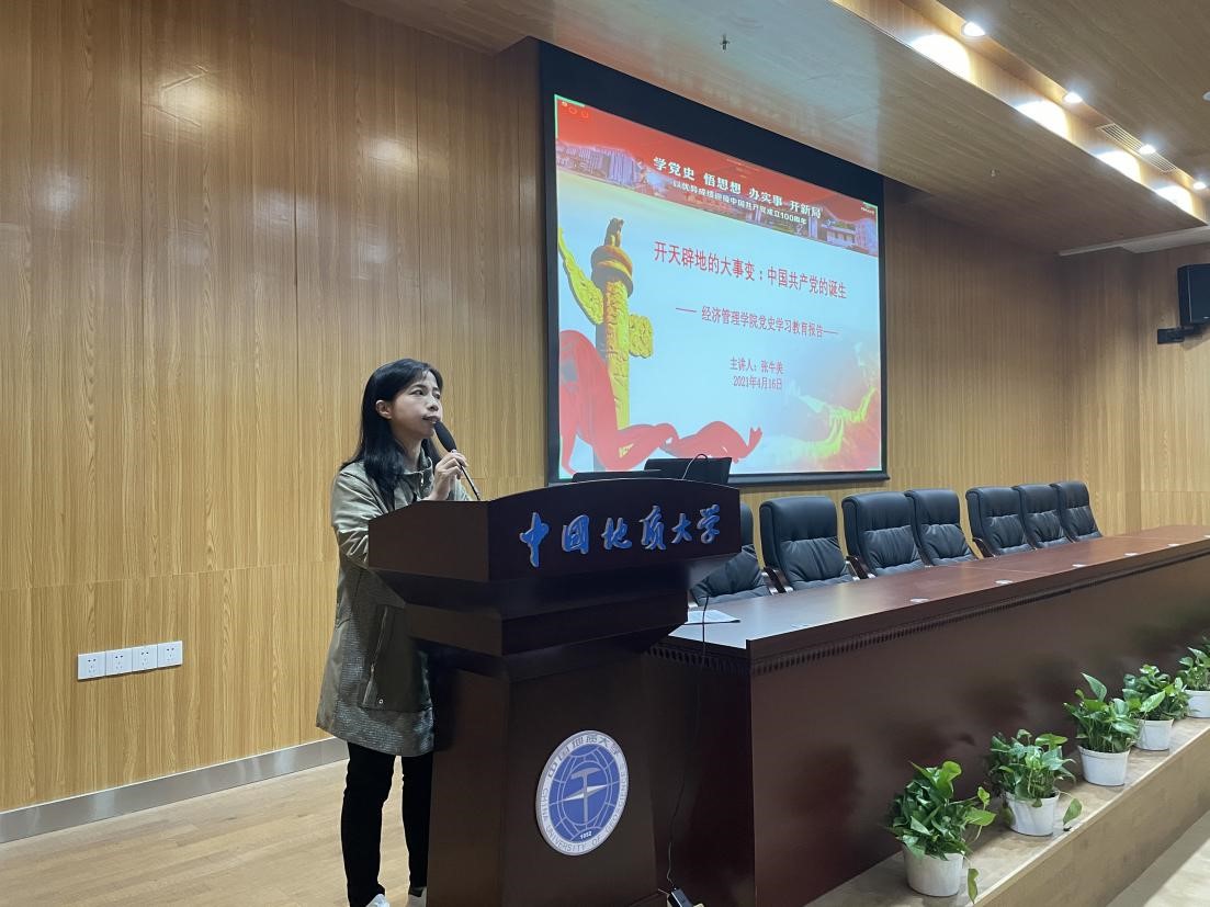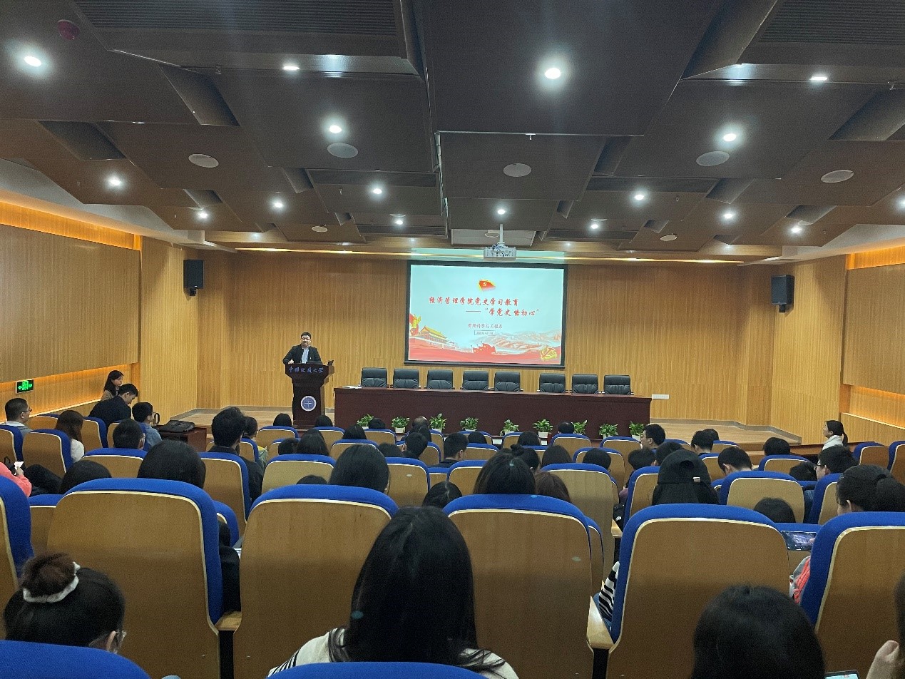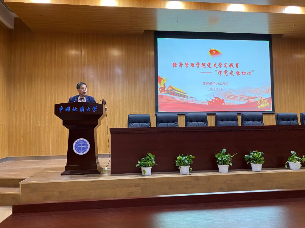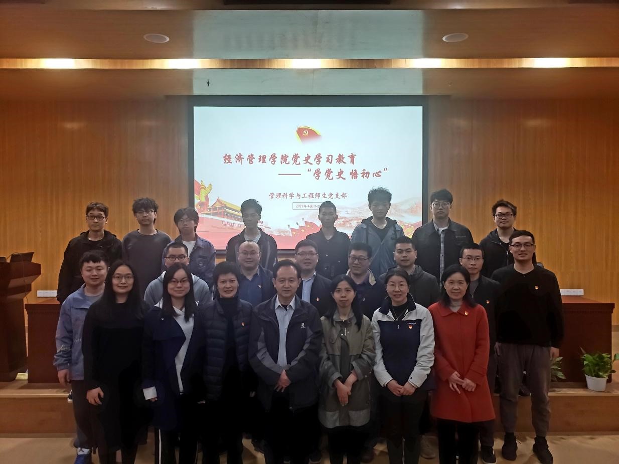 (通讯员:倪兴华)为深入贯彻落实党中央要求,迎接中国共产党成立一百周年,4月16日上午,成人网站 管理科学与工程系师生党支部在未来城校区经管楼一楼报告厅,组织开展“学党史、悟初心”党史学习教育活动。学院党委书记杨昌锐,副院长王广民,老党员帅传敏教授,以及管科系师生党支部100余名师生参加。我校马克思主义学院党史讲课团成员张牛美博士应邀作专题报告。管理科学与工程系教职工党支部书记孙涵主持报告会。