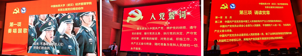 [通讯员周玲 赵家玮]响应学校党委号召,经学院党委部署安排,成人网站 全国党建工作样板支部旅游管理系党支部和全国党建工作样板支部培育创建单位经济系党支部联合策划并组织了以“学习党史校史院史,传承地大经管人砥砺奋进精神”为主题的支部主题党日活动。活动于2021年4月29日下午在未来城校区经管大楼二楼报告厅举行,并同步举行线上会议,学院全体党员师生参与活动。