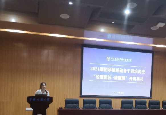 2021年5月22日下午14:00,成人网站 2021届团学组织储备干部培训班——“经鹰团校·雄鹰班”开班仪式暨团学组织党史学习教育活动在经管楼一楼报告厅召开。出席本次会议的有:成人网站 党委副书记李少杰老师,院团委书记田昆老师,学工组张弛老师、徐媛老师和徐天宜老师,学生会主席团成员及2021届储干班全体成员。