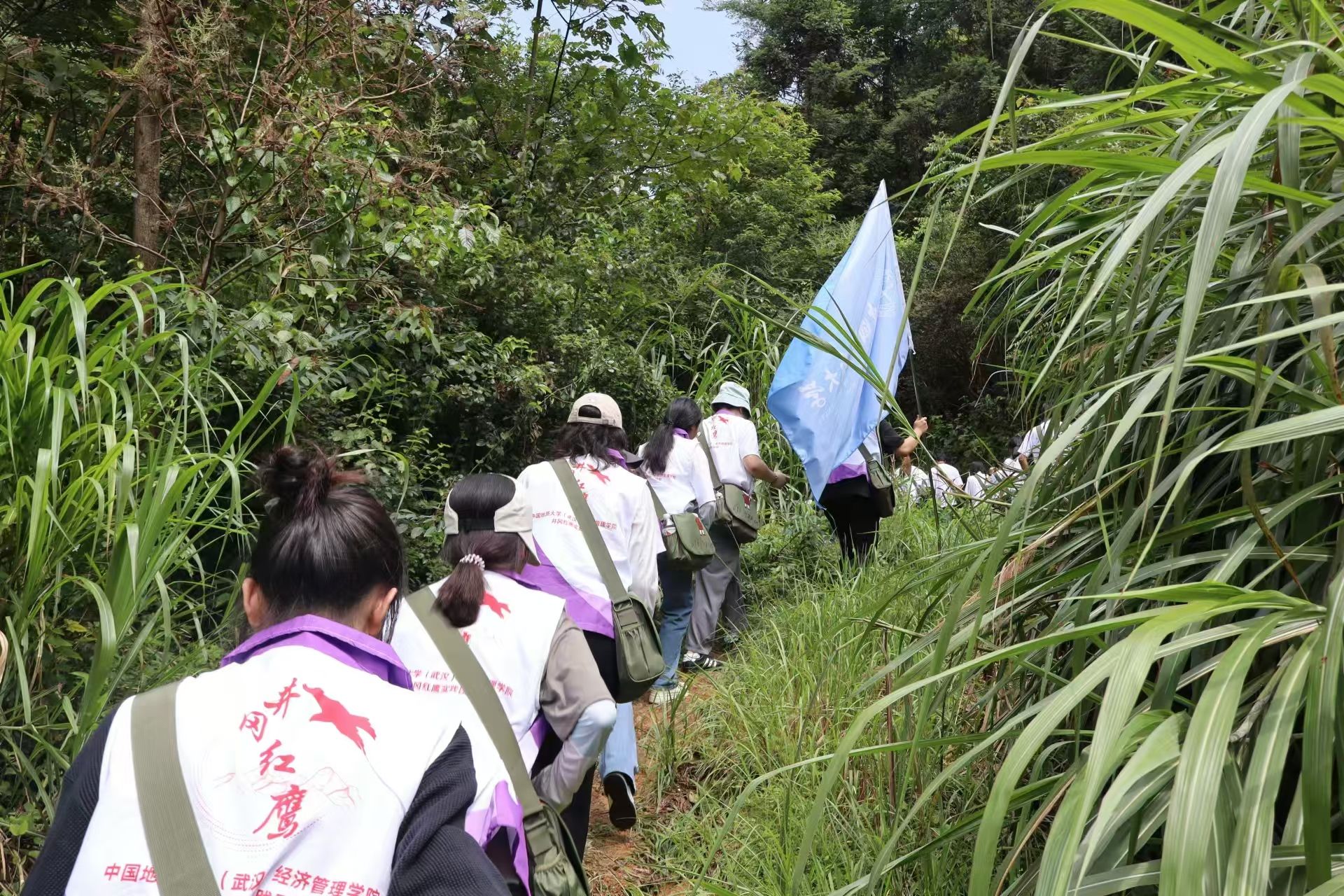 从八角楼继续出发,实践团重走红军小道,步行三公里,亲身体验红军的艰苦奋斗和顽强拼搏。面对山路的泥泞、湿滑和蚊虫,队员们不惧艰苦、快速前进,到达了茅坪镇马源村老乡家。在这里,团队成员们分工合作、相互协作,利用有限的食材制作了一顿特别的红军餐,体验红军苦与乐和军民鱼水情。
