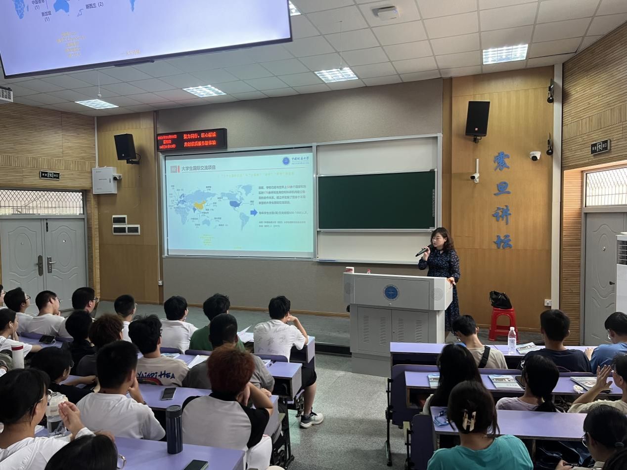 9月8日,国际教育学院院长范陆薇为新生带来了国际交流学业规划讲座,介绍了地大的国际影响力及相关项目的参与流程。此外,张弛老师再次强调了学校的规章制度,明确了学生需遵守的纪律底线。