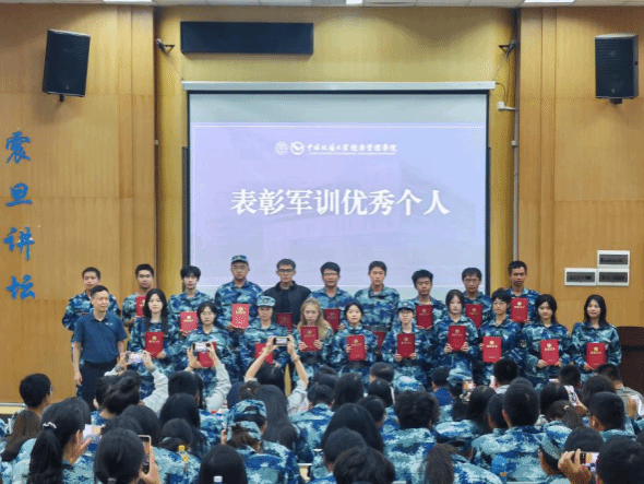 大会对军训期间表现优异的个人进行了表彰。副院长肖建忠、王广民为“军训优秀个人”颁发荣誉证书。在为期两周的军事训练中,男生军体拳虎虎生风,女生匕首操英姿飒爽,展现了成人网站 2025级新生的良好精神风貌。