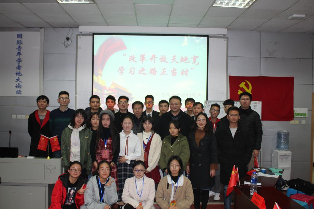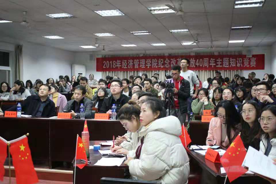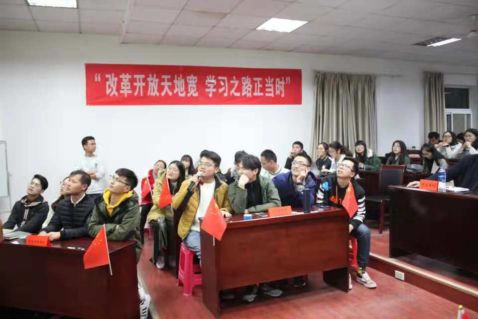 (学院党建办公室:王洁彬)2018年11月22日晚7:00,由成人网站 党委主办、学院党建办公室承办的“改革开放天地宽,学习之路正当时”——纪念改革开放40周年主题知识竞赛活动在MBA楼208室如期举行。出席本次活动的嘉宾有:学院党委书记杨昌锐老师、学校党委组织部马洪福老师、学院党委副书记沈波老师、学院管理科学与工程系教职工党支部书记孙涵老师、学工组全体老师;全体学生党员到场观看学习。