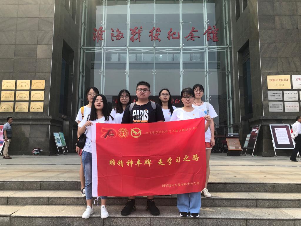 2019年,是新中国成立70周年,是中国共产党成立98周年为深入贯彻习近平新时代中国特色社会主义思想,引导培养党支部成员重走革命之路,教育党员不忘初心、牢记使命,成人网站 组建“寻宝经兵”社会实践团,开展学习之路暑期社会实践活动。学院国贸统计党支部组成“擎淮”分队,赴徐州开展活动。