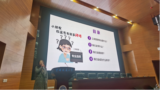 随后,工商大类各系代表教师进行专业分流宣讲。市场营销系郭锐老师就市场营销专业进行了正确解读,他指出营销不等于推销,营销是企业工作的核心;他还对营销系课程安排、师资队伍以及就业前景进行了简单的介绍。张京老师针对成人网站 工商管理专业双语教学的办学特色着重进行了介绍,分享了往届工商管理双语班毕业生的就业和升学去向,并将往届优秀毕业生精心准备的介绍和祝福视频带到了宣讲会。会计系杨洁老师分析了会计学科的发展方向,指出财务人员在未来不仅不会被淘汰,反而需求巨大,此外她还对学生未来深造方向、就业去向进行了解读。旅游管理系肖拥军老师从旅游业发展视角出发,向同学们介绍了专业培养项目、专业发展前景,解决了学生在就业方向上的疑惑。各系宣讲后,在互动交流环节中同学们积极向老师提出专业发展、升学、就业等方面问题,老师们为其答疑解惑、指点迷津。
