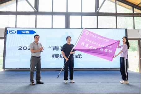 随后,学院党委副书记李少杰老师为第二期青马工程“经鹰班”学员授旗,全体辅导员为学员代表佩戴团徽,“经鹰班”全体学员重温入团誓词。
