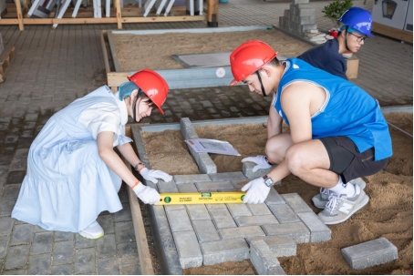 第二项活动是园林设计劳动。大家以小组为单位,按照图纸要求通过组内合作,搭建徽州园林微景观。园林微景观的搭建课程融合多学科内容,涵盖了土壤、植物、测量和建筑等学科知识。通过师生团队合作共同搭建园林沙盘,既能让学生体验到自然魅力,也让同学们增强了团队合作意识,在实践中提高自我的理论联系实际能力,感悟大国工匠精神,体会到劳动者的不易和劳动的价值。