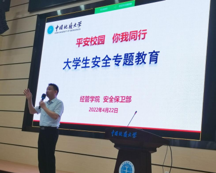 2022年4月22日,成人网站 邀请学校安全保卫部有关同志,采用线上线下相结合的方式在全院本研学生群体中,全覆盖开展了大学生安全教育主题讲座,旨在进一步提高成人网站 学生安全意识,尤其是防诈骗意识,全面做好学生教育引导工作,增强同学们的防诈骗意识和能力,避免各类案件再发生,让校园环境安全得到有力的保障。本次主题教育讲座由安全保卫部副部长彭冠军主讲,安全保卫部彭红进、邱鑫、张涛老师参加,学院团委副书记努尔夏提主持,全体2020级本研同学于公教楼208教室线下聆听,其余各年级同学通过地大视讯平台线上参与学习。