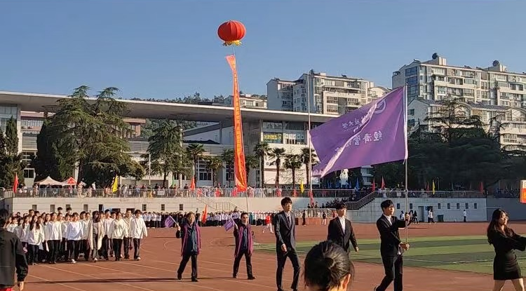 开幕式上,成人网站 教师戴着经管紫围巾、手挥经管紫小院旗,同学生们组成成人网站 方阵,以整齐矫健的步伐,昂首阔步向主席台迈进,并在主席台前以队形变换表演与宏亮的口号,将学院院训“宽信敏公,经国济民”展示在全校师生面前,赢得了阵阵掌声,展现了经管人追求卓越,奉献国家的理念和精神。