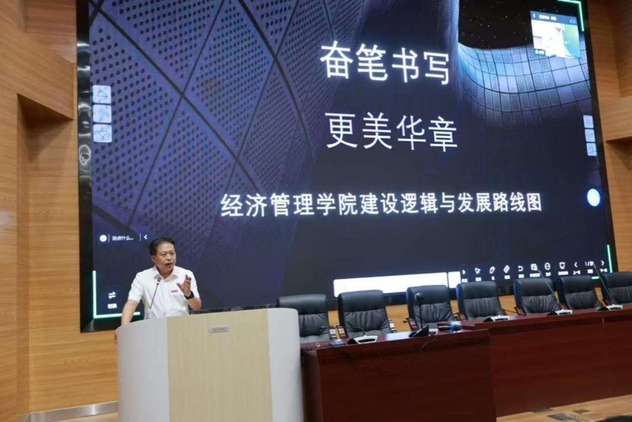 开学典礼结束后,党委书记杨昌锐和副院长程胜为新生讲授开学第一课——“了解学院文化,领悟经管精神”以及“严抓学术诚信,严守学术规范”。希望全体研究生新生能够在良好的学院氛围下,严于律己,拼搏进取,早日成为“品德高尚、基础厚实、专业精深、知行合一”的地大人。