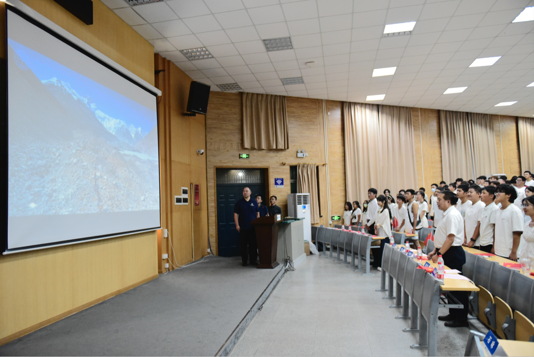 典礼第九项,师生齐唱《勘探队员之歌》。