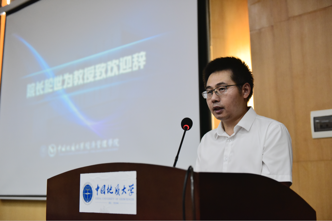 典礼第二项,院长於世为教授致辞。他向新生表示祝贺和欢迎,并介绍学院的历史沿革和学科发展。他鼓励新生将个人成长与国家命运紧密相连,并抓住机遇努力提升自我,并对此提出了两点期望:一是将幸福小我融入报国大我;二是将幸运机遇谱就奋进青春。