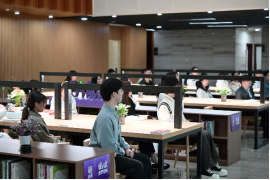 学院团委书记徐媛介绍“悦读共学”空间及“共读一本好书”师生漫读计划活动。她介绍了“悦读共学”空间的设计初衷、筹备过程和使用情况。“共读一本好书”师生漫读计划,旨在引导同学们形成深度阅读的能力与习惯,今年设置了五类阅读主题,吸引了百余名同学参与。