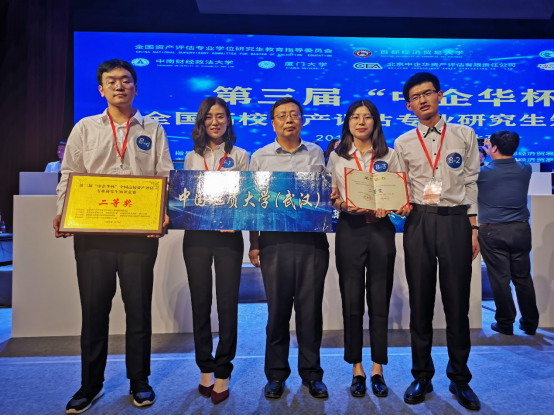 2019年6月23日晚,第三届“中企华杯”全国高校资产评估专业研究生知识竞赛在首都经济贸易大学琢玉讲堂落下帷幕。在成人网站 朱冬元教授带领下,由资产评估专业研究生曹君茹、阴朝旭、于春雪和樊帆组成的成人网站 (武汉)代表队,在全国25支高校参赛队伍中脱颖而出,总成绩排名第三,斩获二等奖!朱冬元教授获得优秀指导教师奖。