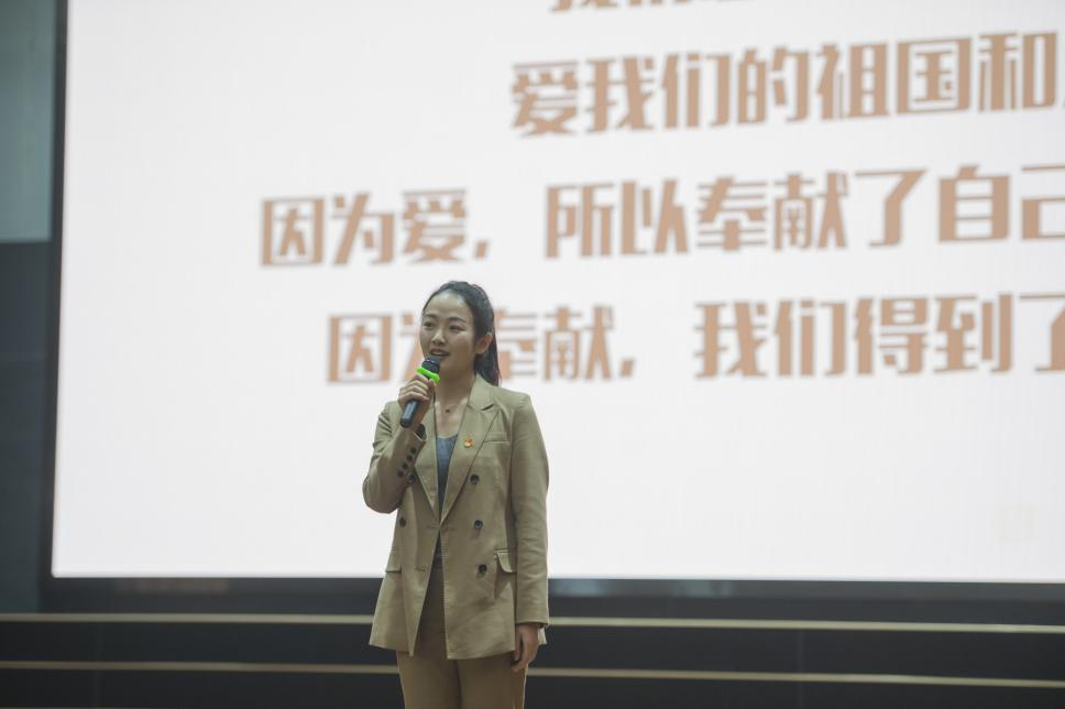 市场营销专业本科生吴恺文将自己在央视录演的《红色文物青年说》节目带到活动现场,带来了一场生动的微党课。他以青年人视角、故事化讲述、创新性呈现的特色,回顾武汉长江大桥的艰难建造史,讲述党带领全国各地的优秀桥梁专家和建设人员攻坚克难、筚路蓝缕的红色故事。他说,从北京录完节目回武汉时,火车正好驶过武汉长江大桥,飞驰而过的短短几十秒,他仿佛又看到了大桥建设时的火热场景,看到了党员同志们一同攻坚克难,听到了铆钉风枪和跳动风顶工作的阵阵铿锵声。