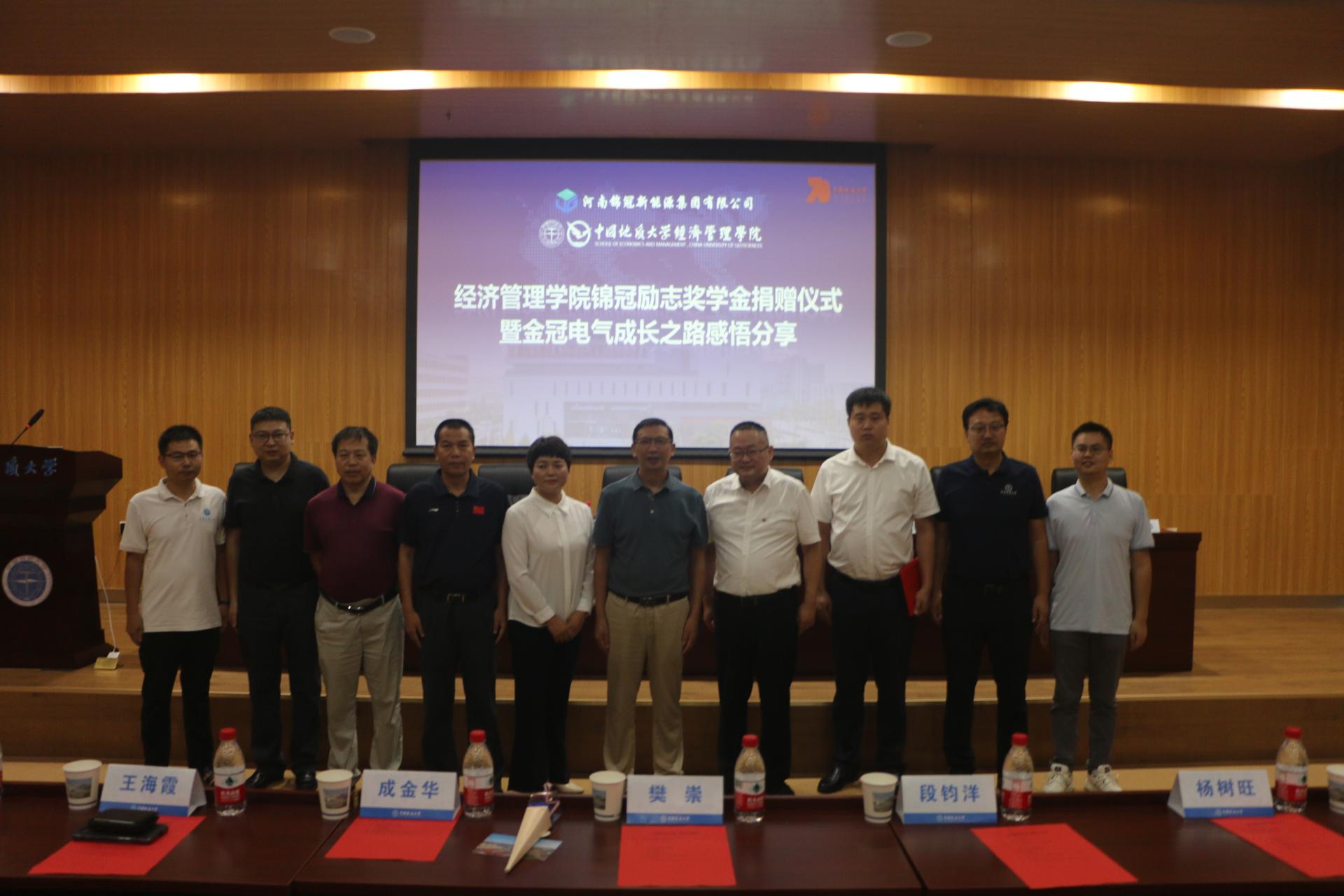 (通讯员 高婧珂)9月9日上午,成人网站 “锦冠励志奖学金”捐赠仪。会议由学校原校党委副书记、纪委书记成金华教授主持。成人网站 客座教授、河南锦冠新能源集团有限公司总裁、金冠电气股份有限公司董事长兼总经理樊崇向成人网站 捐赠善款并致辞;金冠电气副总裁王海霞、人力资源经理段均洋及成人网站 、自动化学院及校友与社会合作处负责同志参加了本次活动。
